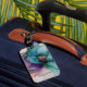 Vacker Aqua Blå Lila Guld Blommig Bagagebricka