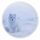 Utformningen innehåller ett foto av en arktisk räv som tagits på plats i Islandet.