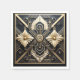 Elegant vintage Art Deco design servett i krämig elfenben, svart, guld. Vacker blomster med gyllene centra, geometriska linjer och vinklar och eleganta svarta och gyllene metallpärlor på svart.