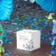Vacker askblå blomsterbaby shower presentaskar
