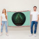 Vackra Baroque Stil Julgran med Grönt Ornament I ett snyggt vardagsrum med grönt och en röd tegel som golvar en snyggt vardagsrum med grönt och en röd tegel golv