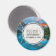 Evenemang spara datum magnet med ett vackert fotografi med en vacker bergskedja, grå och rost färger. En grön frodig skog omger en lugn klar sjö. Storslagen naturlig bild.