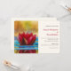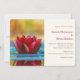 En bröllopsinbjudan med ett fotografi av en damm med en vacker röd lotusblomma som sticker upp högst upp.