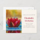Födelsedagsinbjudan med ett fotografi av en damm med en vacker röd lotusblomma som sticker upp högst upp.
