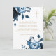 Den klassiska baptisminbjudan till religiösa för marinblått blommigt har en elegant guld kor och vintage stil blåa blommor på framsidan, med en vacker mörk blått indigo på baksidan av kortet. Med denna söt inbjudan till botanisk blommigt firar du ditt barns kristna valör eller katolska hedersskådespel. Denna sofistikerade baptisminbjudan till botaniska blommigtar är också perfekt för vuxens baptism.
