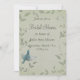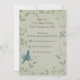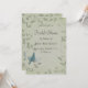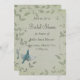 Vacker målning av en blå skogssångare som flyger uppåt placerad på en mjuk askgrön fläckig bakgrund med eleganta löviga vinrankor. Stick ut från mängden med denna vackra och eleganta unika bröllopsdusch-inbjudan. Designen ges en falsk tygstruktur för effekt. Denna bröllopsdusch-inbjudningsdesign finns också på många andra brevpappersprodukter för att passa alla dina behov av brölloppsset.