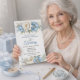 Fira en anmärkningsvärd milstolpe med denna eleganta inbjudan till 90-årsfirande med mjuka blå magnolior, krämfärgade peonior och delikat grönska i en tidlös blomsterdesign i akvarell. Perfekt för att hedra Mamma, Mormor eller en nära vän, denna inbjudan sätter en graciös ton för en minnesvärd fest. Anpassa namn, datum, tid, plats och RSVP-information för att matcha ditt speciella evenemang. Tillgänglig som en direkt digital nedladdning för enkel utskrift hemma eller som vackert tryckta inbjudningar på premiumpapper, är denna blomsterinbjudan ideal för formella fester, trädgårdsfiranden och eleganta familjesammanträffanden. En klassisk souvenirdesign som gästerna kommer att