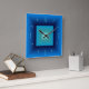 En vacker blå köksklocka med en fyrkantig akvafärgad mittdel. Denna klocka har en enkel design och har siffror.
