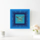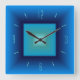 Vacker blå och akvafärgad fyrkantig köksklocka klocka