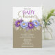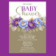Fira en speciell blivande mamma med denna eleganta blommiga baby shower-inbjudan som har en fantastisk komposition av blå och lila peonior accentuerade med mjuk grönska och ömtåliga blommor. Den sofistikerade färgpaletten i kombination med graciös typografi skapar en tidlös och feminin design som är perfekt för att välkomna en babyflicka med stil.