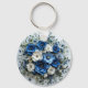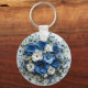 Blå och vita blommor på vit bakgrund, som betonar elegans och lyx