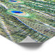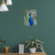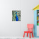 Halvblankt affischtryck med fotobilden av en vacker blå påfågel med färgrika fjädrar i solfjäderform. Anpassa din affischstorlek efter önskemål.