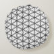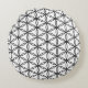 Rund kudde med blommönster av livets mönster. Denna eleganta design i svart och vita färger tillhör den heliga geometrin. Blommönstret av livets mönster tros ge läkning och harmoni. Varje skärningspunkt mellan cirklar bildar Davidsstjärnan.