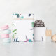 Detta vackra och eleganta boho blommiga bröllopsmönster kommer säkert att glädja det speciella paret med sitt ljusa och glada mönster. Denna design har en vit bakgrund med rosa och lavendelblommor med botaniska element och fjädrar.
