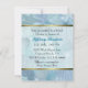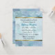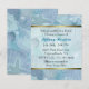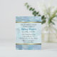 Vacker bröllopsinbjudan med ett turkost och blått skalsnäcka-mönster högst upp och längst ner, och en ljusare version av mönstret i mitten. Grafik med guldtonslinjer fungerar som en kant runt textområdet. Anpassa texten efter dina behov för bröllopsevenemanget. Vacker för alla brudar som har ett strandtema bröllop eller om badrummet ligger nära havet.