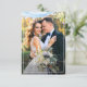 En vacker vigselkort med en underbar bild på det nygifta paret. Brudens och brudgummens bild och bakgrundsfärg och text kan anpassas. Lägg till ett personligt tackmeddelande och du kan ladda upp ditt eget vigselfoto.