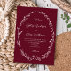 Vacker burgunderröd rustik vildblomsterkrans bröll inbjudningar