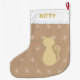 Fin katt och snöflingor på beige-bakgrunden, julstrumpor. Namn kan vara personlig.