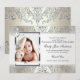 Dop inbjudan. Elegant silverhjärta heligt kors & damaskdesign. Anpassa med dina egna detaljer. Observera att alla bilder är platta!