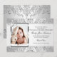 Vacker Damask & Kors Silver Foto Dop Inbjudan