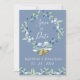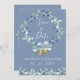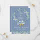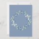 Vacker blå blomsterkrans med vacker vit text. Den dammiga blå färgen med det blå trycket sätter tonen för enkel elegans.
