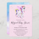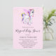Vacker enhörning med regnbågshår Baby Shower Inbjudningar