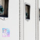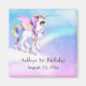En save the date magnet med en bild av en enhörning med stora blå ögon, rosa vingar och en regnbågsman och svans. Kawaii söt.