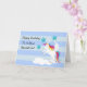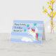 bild av en vacker vit enhörning med regnbågsfärgad man och svans. hon står på en vit moln. har också tre blå stjärnor med en ljusare fläck och vita stjärnor. text kan ändras på framsidan och mer text kan läggas till på insidan av kortet. bilder på prettygrafik.com.