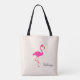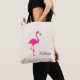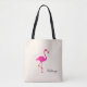 Vacker magenta flamingo och kalligrafi på elfenbensfärgad toteväska.