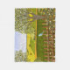 En loppfilt med en vacker bild av en naturscen: en fågel sitta på ett väderstall, vilda blommor som växer runt stängslet, en jordbrukare på en traktor, som arbetar på sin mark, träd med löv och jordbruksmark med olika färg. Originalteckningar av W.B.