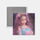 Vacker flicka med rosa blommor i håret magnet