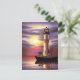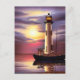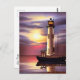 Vacker fyr, segelbåt och havssolnedgång vykort