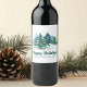 Denna vackra anpassade firmas julfestetikett för vin har vackra gröna julgranar i ett vinterlandskap ovanför ditt anpassade företagsnamn och Glad Jul. Personlig julsmyckning för ett företag eller familj.