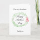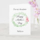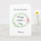 Ett grönt akvarell lager och rosa blommor vacker Morsdag dotter-kort, som du enkelt kan anpassa på framsidan med hennes namn. Det interna meddelandet på detta vackra dotter Morsdag-kort innehåller ett hjärtligt meddelande, som du också kan anpassa om du vill. Baksidan har samma gröna akvarell-lager med rosa blommor med en plats för att skriva namnen på barnet/barnen eller vad du vill. En söt Morsdag- present som är personlig och garanterat kommer att skattas.
