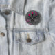 Mitt teckning på en elegant gotisk ljushållare i svart och grått med fladdermus vingar, snurrar och shock rosa, drivljus och rosa juveler på grungy grått-bakgrund med shock rosa snurrar. Visas här på en knappnål.