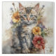 Vacker Grått Tabby katt, omringad av blommor Kakelplatta