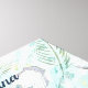 En vacker havfröken med långt, flödande blått hår mot en tealbakgrund med ett mönster av snäckor och blad.