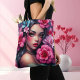 Tote-väska med en latinsk eller latinsk kvinna med söt rosa och blåa blommor i håret. En fantastisk digital aj-konst.