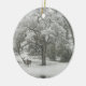 Det här är en vacker julprydnad med ett par hjort i snö av en stor eke träd.