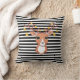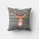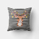 Vacker julhjort dekorerad med gyllene bollar på svart och vit randig bakgrund kuddfodral. Texten Hem Sweet Hem kan anpassas.