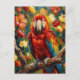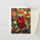 Ett vykort för att säga hej och hålla kontakten med vänner och familj. På framsidan finns en impastomalningsstil färgrik röd, blå och gul Ara och blommor.