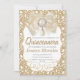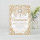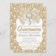 Fira en speciell dag med denna fantastiska Quinceanera-inbjudan! Har elegantens bågcentrum med guld lacy-filigree-bakgrund. Fullständigt anpassade och redo för texten!