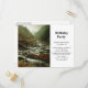 Födelsedagsfest inbjudan vykort med naturfotografi. Moody och vackert landskap. En avskärmad stenbro bredvid en livlig flod med skog och berg som omger området.