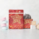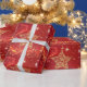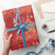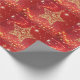Söt julomslutning papper med guld metalliska stjärnor, mousserande stjärnor och glitter på rött.