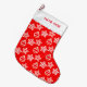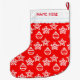 Vacker julmönster på röd bakgrund Julstrumpa. Namn kan anpassas.