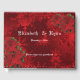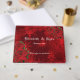 Vacker gäst inbokningsbok som har matchande inbjudningar och svars kort. Djup julröd med monokroma snöflingor och röda Poinsettia blommor. Anpassa text och typsnitt efter dina specifikationer.