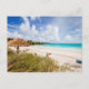 Tropiska stråtakschirmar på en vacker karibisk strand