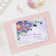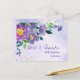 Vacker lila och blå akvarellblomma tackkort för bröllop.