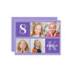 Söt fyrkantig födelsedagsinbjudan postkort för en liten flicka med 4 bilder. Fira barnets födelsedag med söta fotografier av dem på detta anpassade fotografi postkort med vackra lila rutor. Lägg till deras namn och ålder.