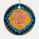 Gul, rosa, orange, blå, grön, guld handmålad, naiv, enkel mandala.